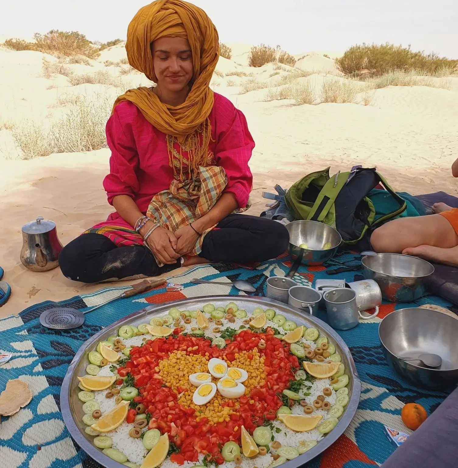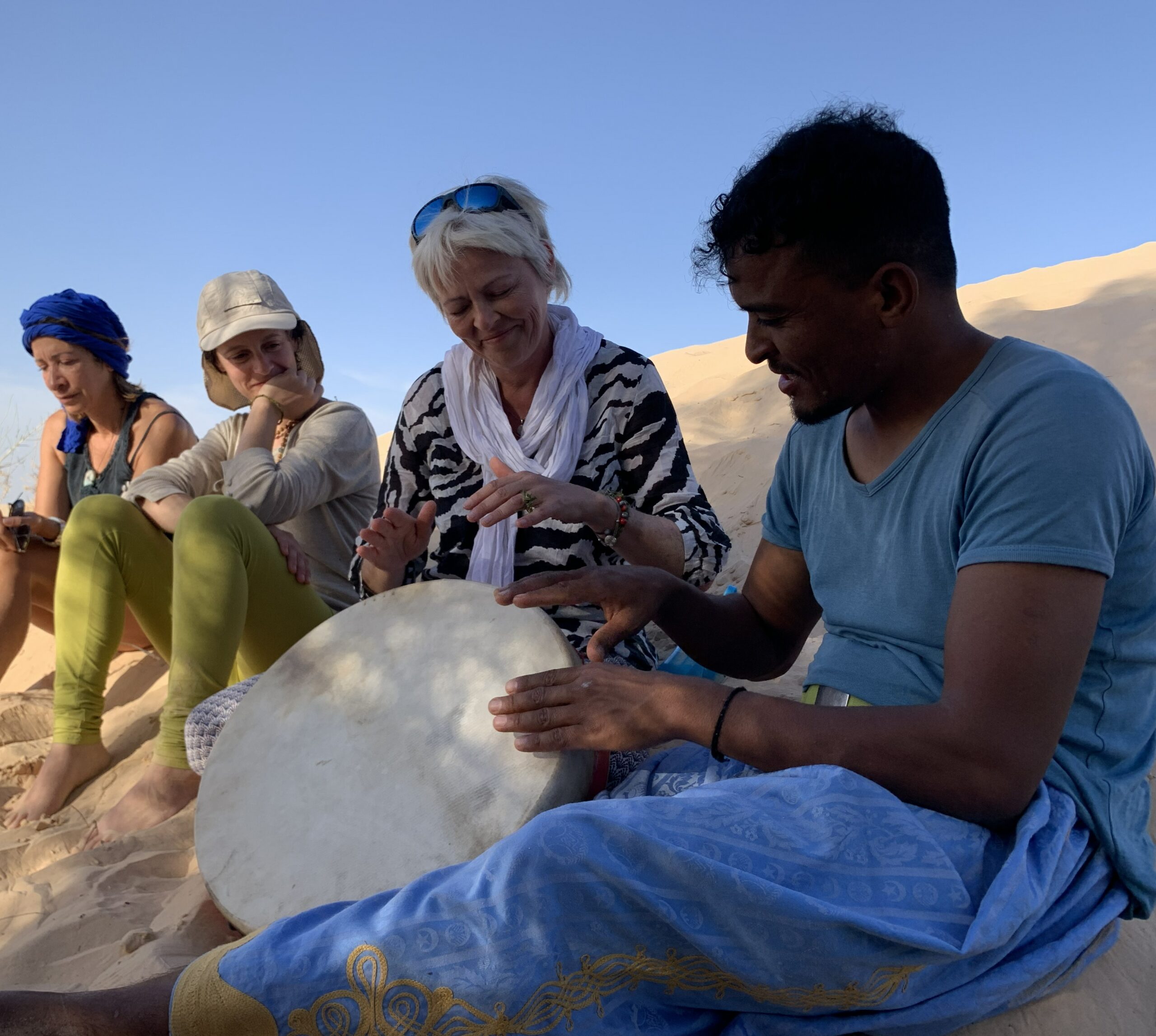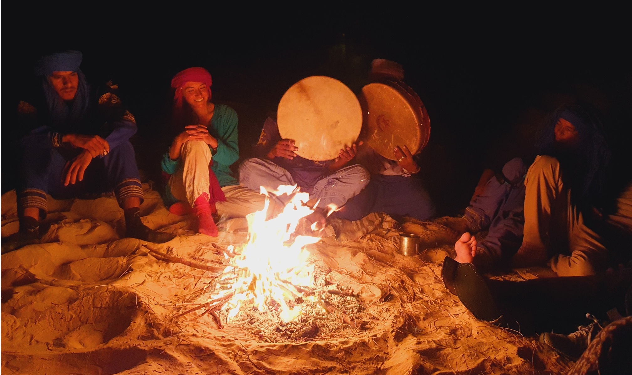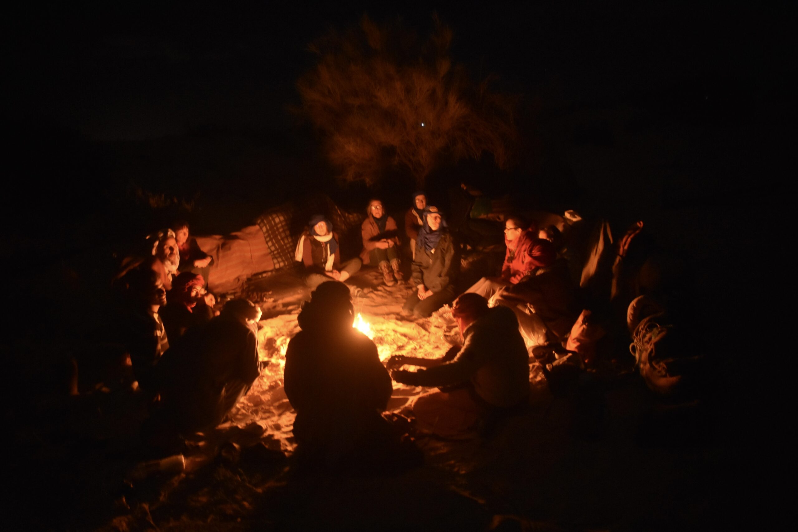 La nuit, autour du feu (et d’un délicieux repas !), nos chants s’élèvent au rythme du bendir avant de plonger dans un sommeil profond sous les étoiles.